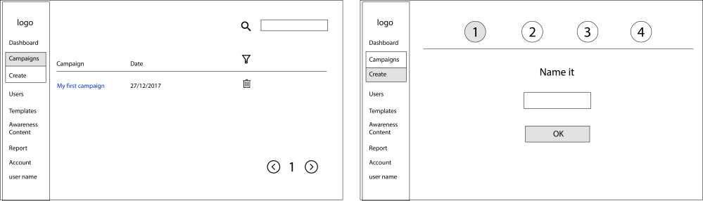 The final objective of this project is to create wireframes of O’phish in order to improve the current user experience already available on http://client.ophish.com/. The user needs to log in, create campaigns and see the results, O’phish interface must be intuitive and user friendly. The business goal being to attract and retain O’phish customers.